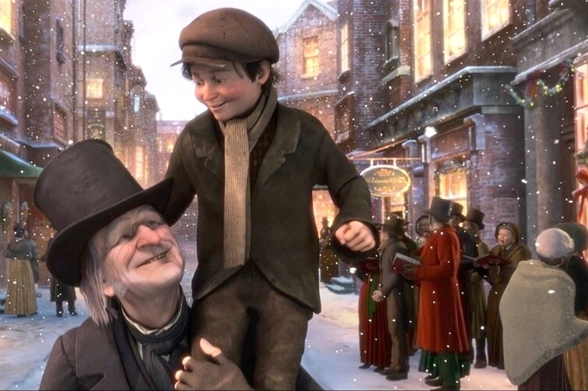 Примерно этот же метод усовершенствован в другом фильме Земекиса - "Рождественская история" по сказке Чарльза Диккенса. Там к закоренелому скупердяю Скруджу явились три Призрака Рождества, чтобы напомнить: он не всегда был сквалыгой и верил когда-то в добро. Сыграть Скруджа от мальчика и романтического юноши до бессердечного старика, а также трех Призраков пригласили Джима Керри с его гуттаперчевым лицом. Пролеты над заснеженным викторианским Лондоном впечатляют, контрасты между замороженностью скупердяя и теплым человеческим миром Рождества вполне удались. Шикарный хорально-симфонический саундтрек написал Алан Сильвестри.
