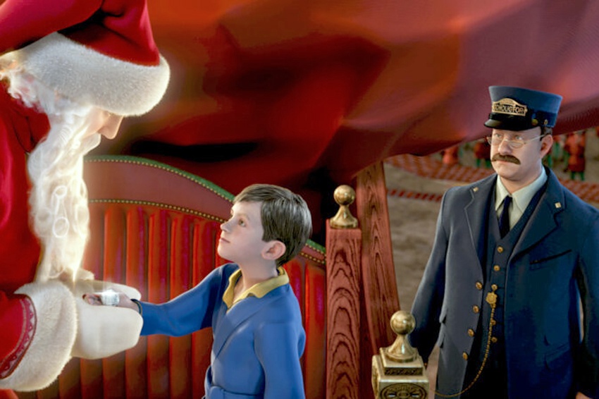 В мире картин, посвященных Рождеству, снято множество. Напомню два, созданных мастером кинематографических волшебств Робертом Земекисом. "Полярный экспресс" 2004 года: там маленький герой, не веривший в существование Деда Мороза, отправляется на "Полярном экспрессе" во владения Санта Клауса. Это музыкальная анимационная фантазия замечательна технологией ее создания. Артист Том Хэнкс, обвешанный датчиками, в пустой студии проиграл все роли от мальчугана до кондуктора волшебного экспресса и Санта-Клауса. Компьютер фиксировал траектории движения его рук, ног и лицевых мышц. Получились виртуальные куклы, которыми можно было управлять, помещая в самые фантастические ситуации - зрелище феерическое!