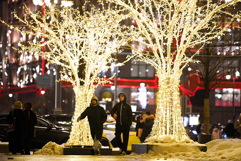 Принять участие в украшении столицы может любой предприниматель. Дизайн может быть разнообразным: классическая хвоя и новогодние шары - или самым экзотичным, к примеру белые жемчужные нити, имитирующие снежинки.
