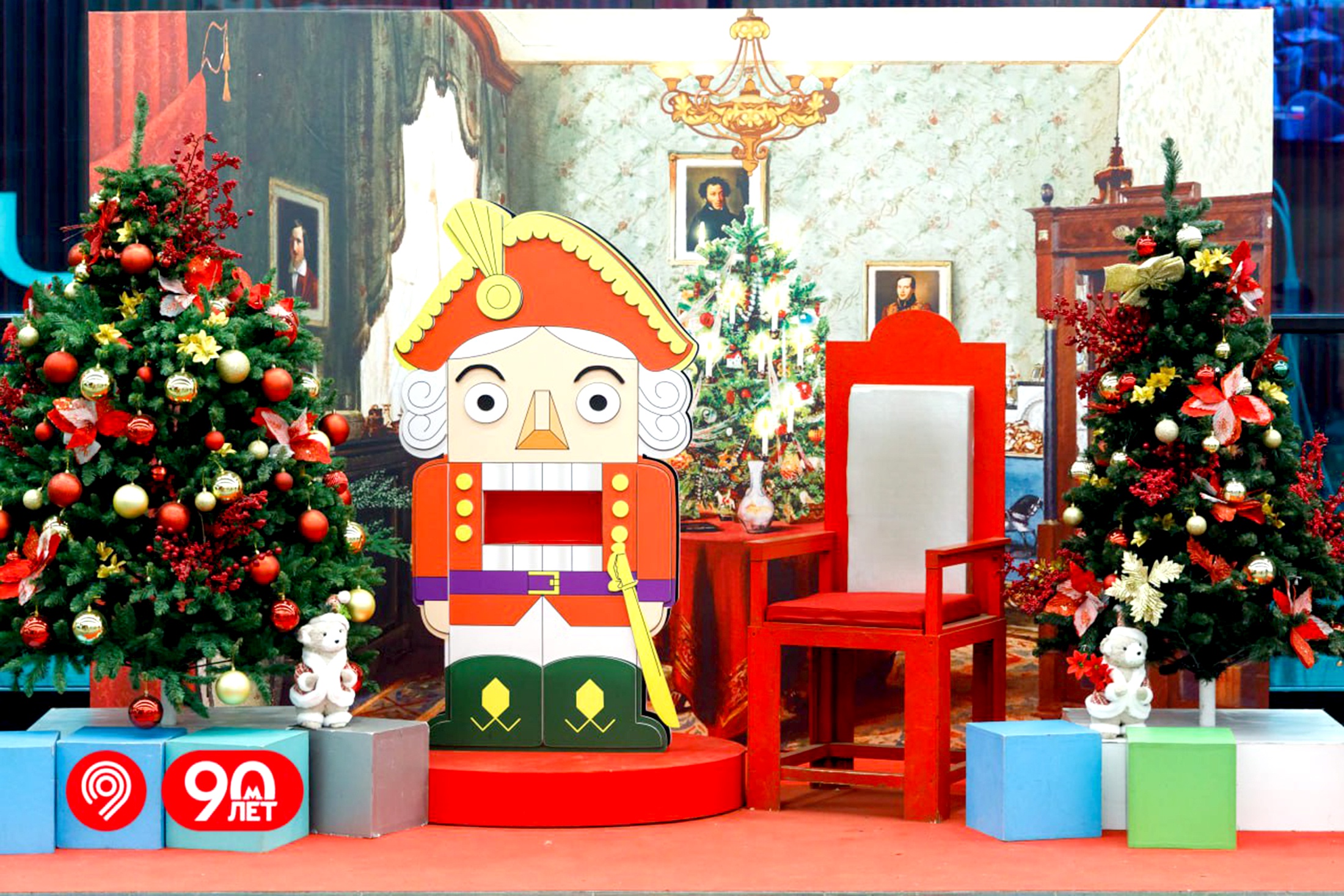 Еще одна фотозона появилась на станции "Мичуринский проспект" Большой кольцевой линии - там установили большую фигуру Щелкунчика, елки и декорации.
