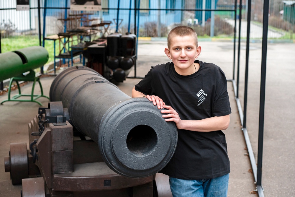 "Полгода я посвятил восстановлению пушки: изучал информацию в архивах, делал графическую реконструкцию, очищал металл от коррозии и многолетних слоев краски. В рамках исследования я установил, что пушку изготовили на Олонецком Александровском заводе. А в процессе работ я обнаружил орудийный номер, который подтвердил принадлежность к морской артиллерии, а также герб Российской империи. Кроме того, определил вес орудия - около четырех тонн", - рассказал Илья Извеков. Помогали студенту мастера производственного обучения колледжа "26 КАДР" Николай Фризин и Дмитрий Мякутин, а также выпускник колледжа Александр Оленичев. Вместе они изготовили деревянный лафет - опору для артиллерийского орудия. После изучения чертежей для точного расчета размеров станины (части лафета) создали новый эскиз, изготовили сложные детали и собрали деревянный станок для пушки.