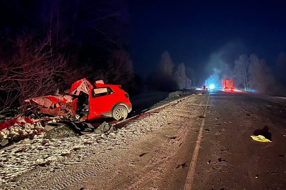 Инцидент произошел утром 9 декабря в Боготольском районе, на 591-м километре федеральной трассы Р‑255 "Сибирь". Volkswagen без номеров выехал на встречную полосу и столкнулся с автобусом, в котором находились 20 человек.