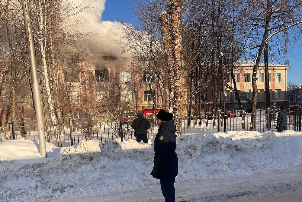 По данным регионального главка МЧС, тушение осложняется конструктивными особенностями здания колледжа 1937 года постройки, а именно деревянными пустотными перекрытиями.