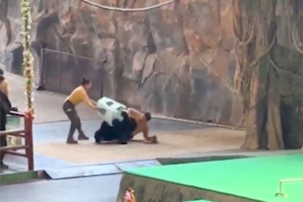 В Китае медведь напал на укротителя прямо во время шоу на глазах зрителей