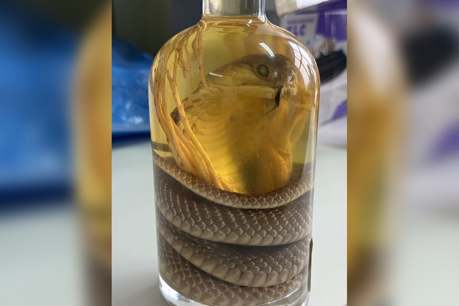 Владелица бутылки змеиного вина прилетела из Вьетнама. Экзотический сувенир она купила на рынке Нячанга.