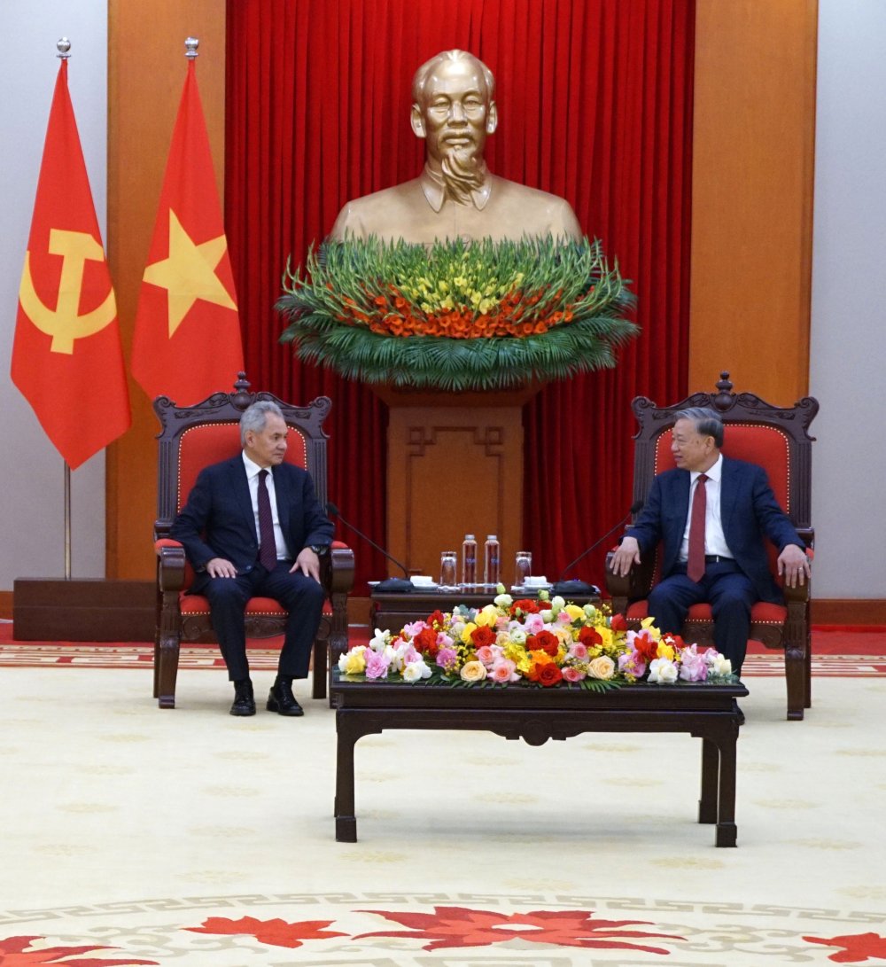 Шойгу поблагодарил генсека ЦК Компартии Вьетнама за участие его лично в торжествах на День Победы в Москве, а также парадного расчета вьетнамской армии. По его словам, для нас важно сохранение исторической памяти, отношений с друзьями, с которыми они складывались на протяжении многих и многих десятилетий. На встрече с министром национальной обороны Вьетнама Фан Ван Зянгом, секретарь Совбеза России заявил, что в современных непростых международных условиях укрепление отношений всеобъемлющего стратегического партнерства с Вьетнамом остается в числе приоритетных направлений российской внешней политики.