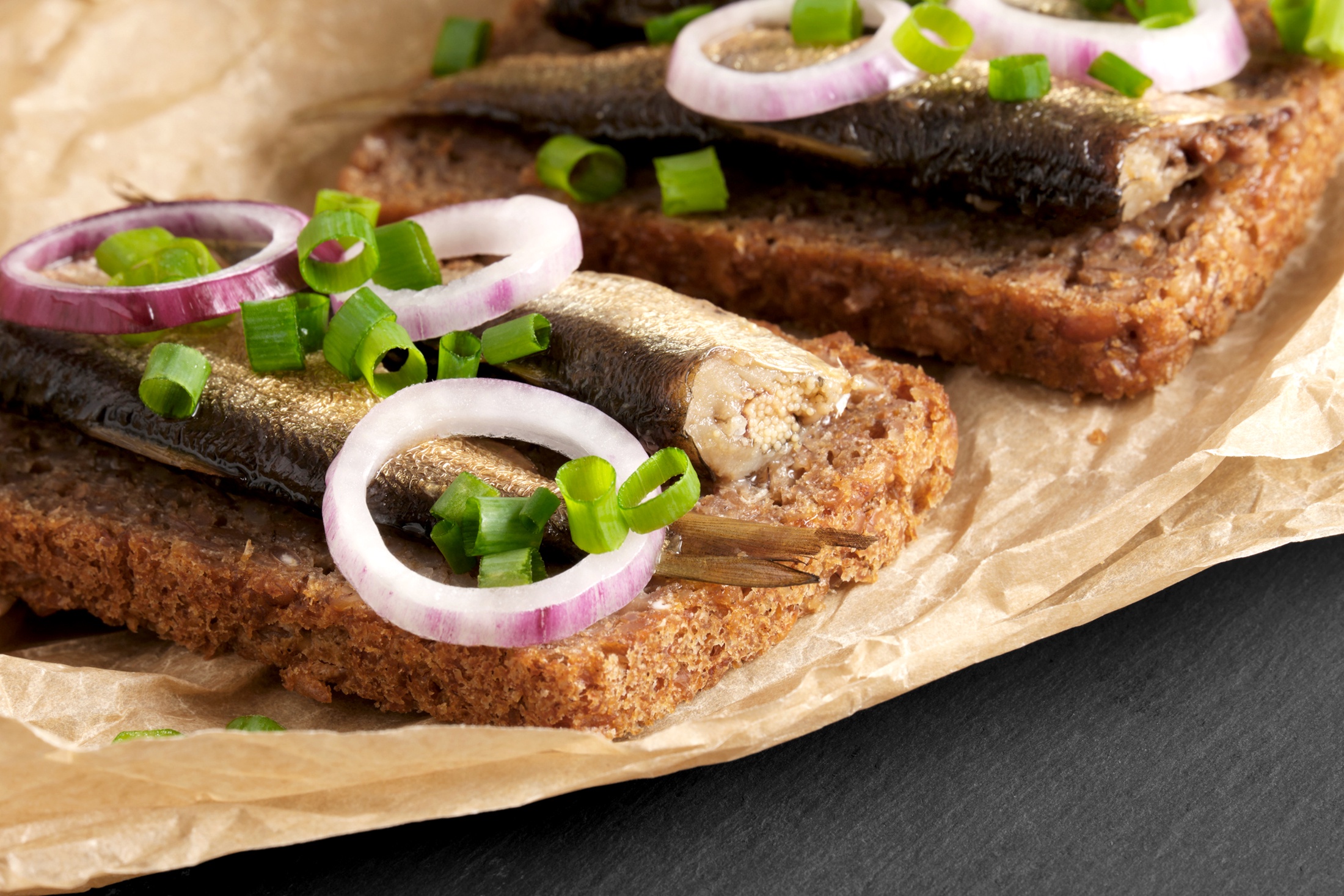 Как правило, для бутербродов со шпротами используется черный хлеб, который поджаривается на большом количестве растительного масла.