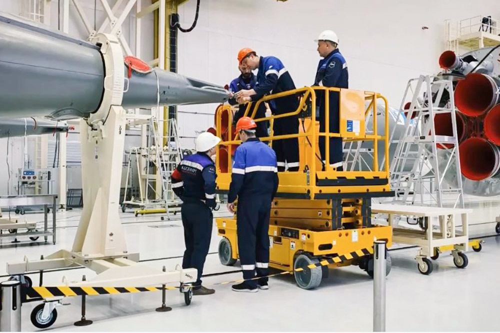 На Восточном уже собран "пакет" ракеты "Союз-2.1б". Произведена стыковка боковых и центрального блоков ракеты-носителя. Собранные в "пакет" блоки готовы к проведению пневмоиспытаний двигательных установок и автономным испытаниям системы измерения ракеты.