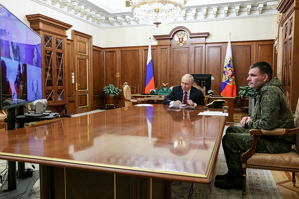 В совещании по видеосвязи приняли участие начальник Генштаба Вооруженных сил, командующий Южной группировкой войск. Кроме того, в кабинете президента в Кремле присутствовал командир 123-й мотострелковой бригады Денис Пирогов.