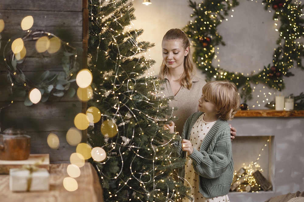 - Дети и животные: дети и домашние питомцы должны быть рядом с елкой только под присмотром взрослых из-за стеклянных игрушек и дождика.