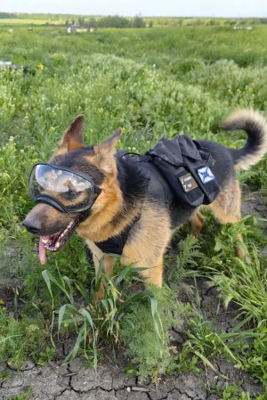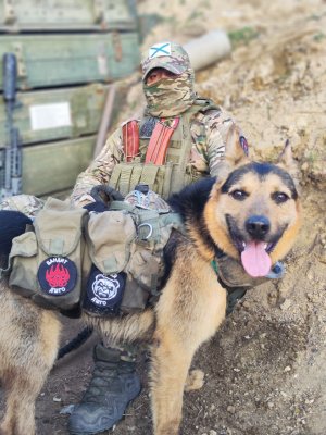 - Вот таким образом, хорошо себя показав, мы с Бандитом и оказались зачислены в бригаду морской пехоты, да не куда-нибудь, а в десантно-штурмовой батальон. Перед вылетом на фронт я смастерил псу разгрузку из старого "ратниковского" бронежилета, пришил карманы для автоматных магазинов и шлейку из кевлара. Этот мини-бронежилет потом не раз выручал его в боевой обстановке.