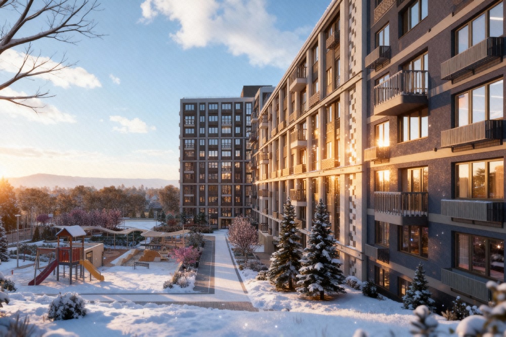 Проект включает закрытую территорию без машин, детский сад, спортивные и прогулочные зоны, бульвар и многоуровневый паркинг. В первой очереди 385 квартир: от классических планировок до евроформатов и видовых вариантов на верхних этажах. Передача ключей запланирована на 2028 год.