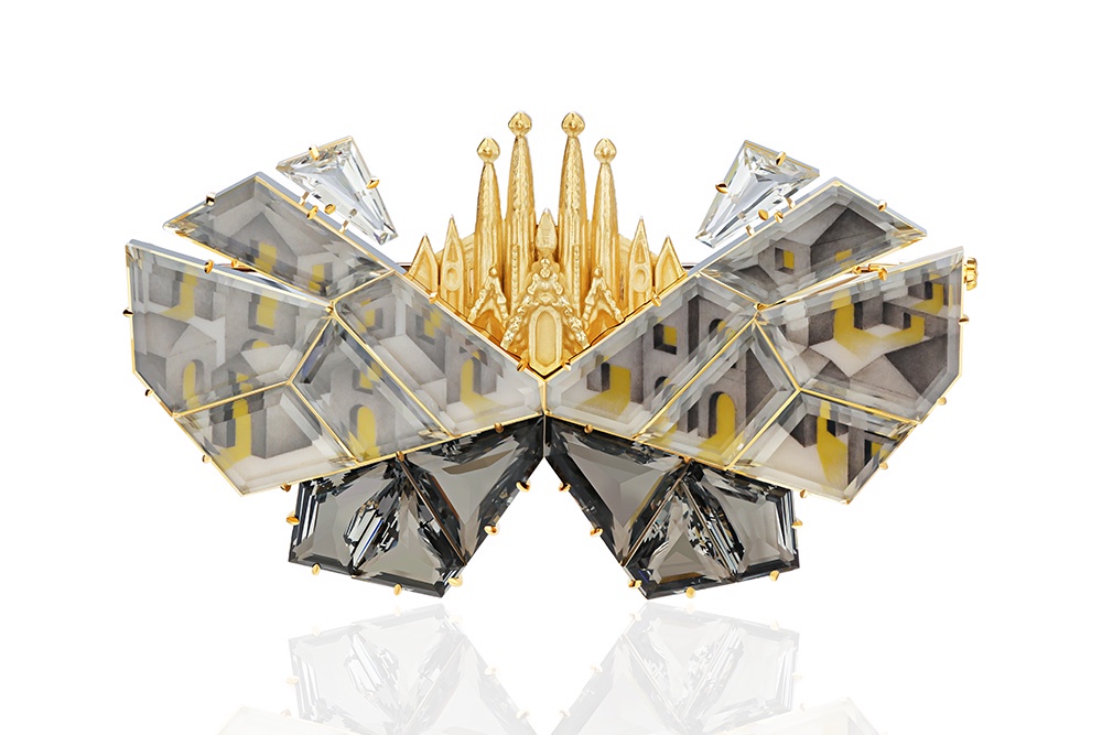 "Бабочка летит к храму, посвященному семье - Саграда Фамилия. Ее крылья словно распадаются на отдельные части. Именно там она сохранит себя, где семейные ценности нерушимы. Силы ей придает свет из окон домов, в которых есть надежда и тепло близких"
