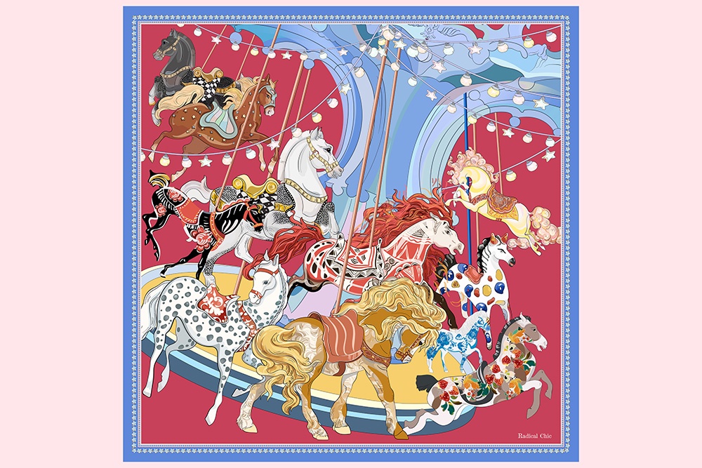 Radical Chic выпустил лимитированную серию новогодних шелковых платков "Зодиакальная Карусель", отвечающую глобальному спросу на "культурный люкс". Изображения на платке "Карусель" отсылают к эстетике русских промыслов, а на платке "Огонь" - к традиции коллекционирования лошадиных фигурок.