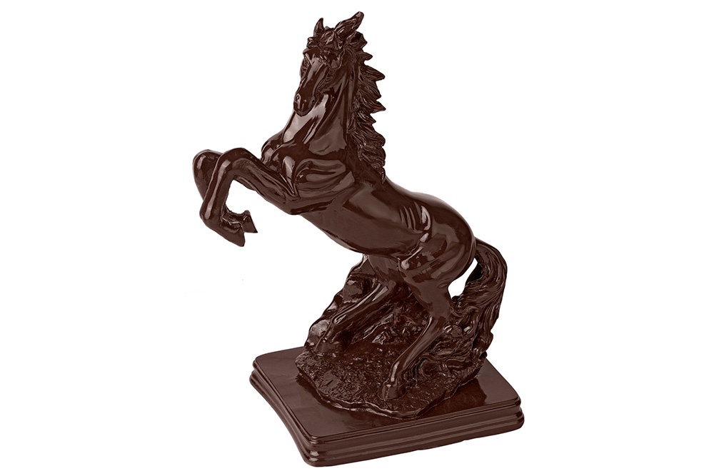 Эффектным украшением стола станет объемная скульптура в виде лошади из белого, горького или молочного шоколада. Ее вес может варьироваться от 180 граммов до 3 килограммов, в расчете на целую компанию.