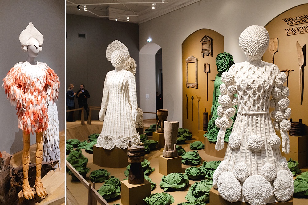 Авторский замысел стирает границы между модой, искусством и сказкой. Зрителя ведут от стихии мифа к мастерству ремесла. Язык русских архетипов транслируется через коды высокой моды. В "Изразцовом зале" дизайнерские экспонаты соседствуют с подлинными предметами быта из коллекции Исторического музея, современные образы встречаются с декоративными традициями прошлого.