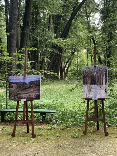 И мценский хор здесь пел, как рукоделье вышивал. И на опушке в чаще парка появились вдруг скамейки на колесиках - читальня под открытым небом. В том же парке проводили вернисажи. У Большого Спасского пруда открылась новая беседка "Левада" - с видами на горизонты.