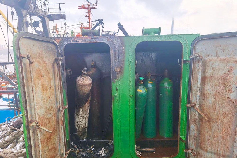 Инцидент произошел днем 19 декабря на судне, которое стояло на причале, расположенном на острове Русском. Ситуация осложнялась тем, что огонь охватил ящики для хранения газовых баллонов.