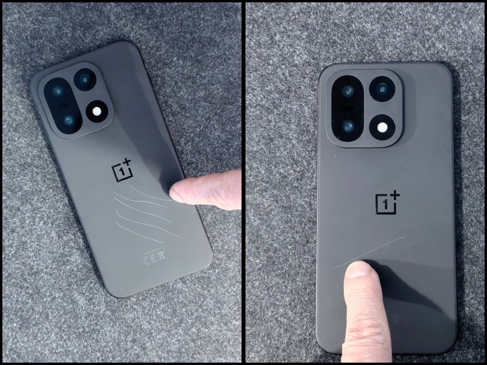 Стиль OnePlus 15 можно охарактеризовать как утилитарный брутализм - от максимального (черная версия) до довольно мягкого в версиях Sand Dune и Misty Purple. В черной версии OnePlus 15 используется задняя панель из матового стекла AG. Это очень интересное покрытие. Оно приятно на ощупь, не скользкое, а еще на первый взгляд кажется, что его легко поцарапать… Но это не так: наоборот, покрытие настолько твердое, что OnePlus 15 сам может "поцарапать" что угодно. И если на поверхности появилась полоска, выглядящая как царапина, то она удаляется одним движением пальца. Очень круто. Это один из немногих смартфонов, на который не хочется надевать чехол, тем более что в глобальной версии его нет, как и 120-ваттной зарядки. В версии для рынка КНР все это есть (но нет поддержки eSIM).