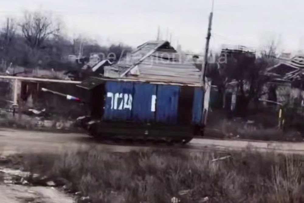 Танки ВС РФ в защите из морских контейнеров показали на видео