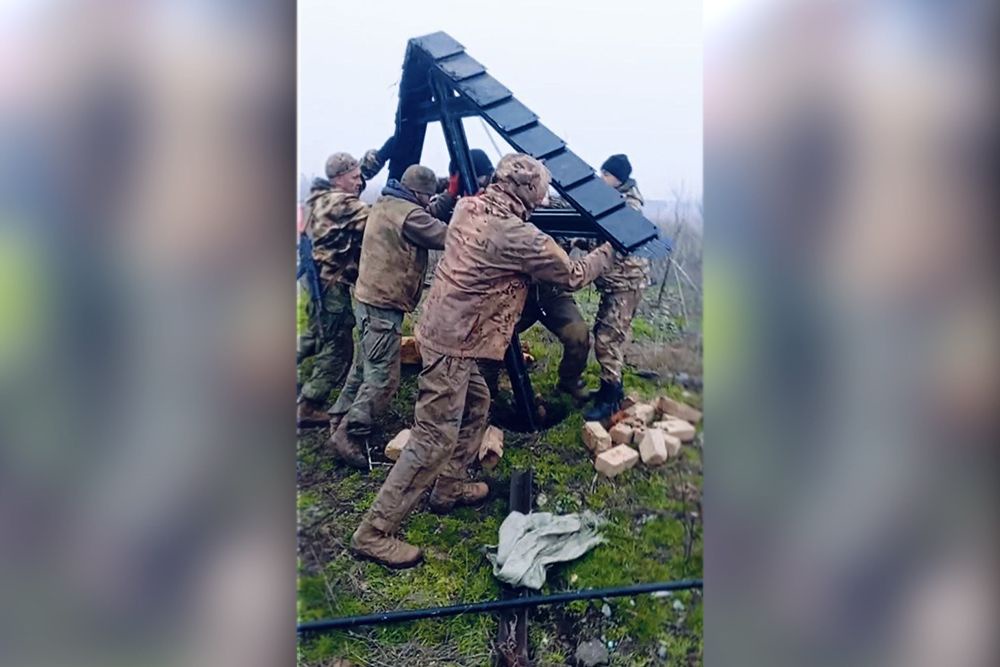 На видео показаны не только кадры установки памятника, но и кадры объективного контроля с отражением атак ВСУ, колоннами горящей бронетехники противника и стеной артиллерийских разрывов.