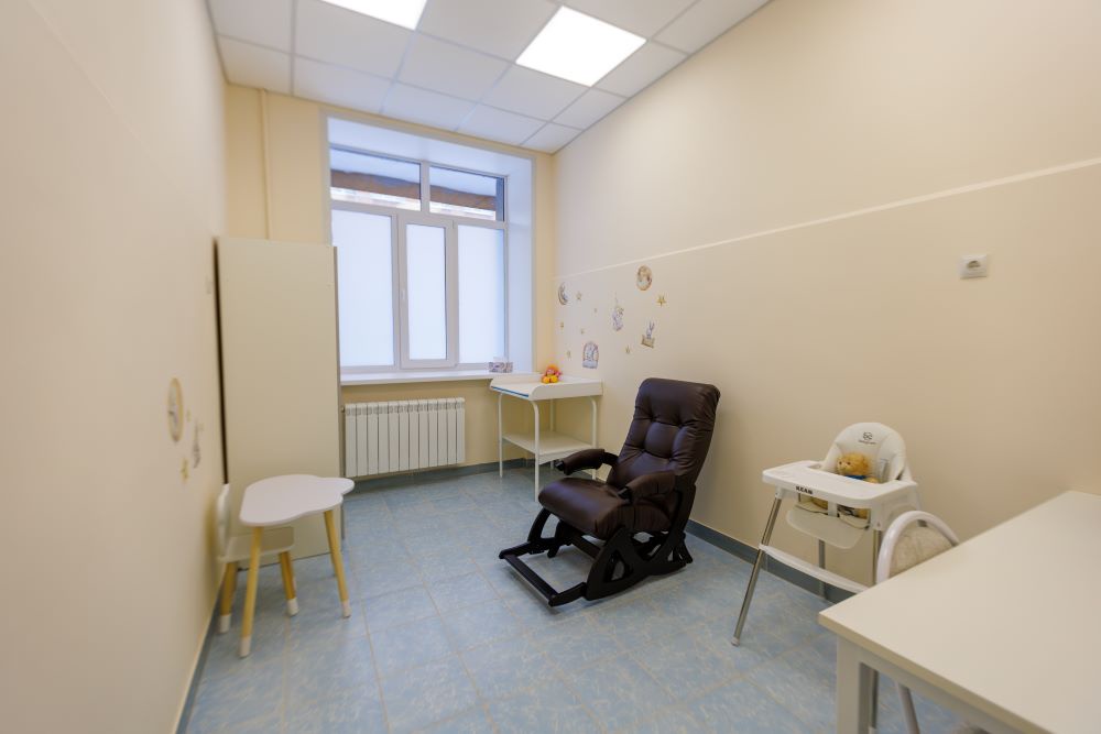 Подсобное помещение за два месяца преобразилось кардинально. Там уже выполнен свежий ремонт, установлен пеленальный стол, обеденный столик малыша, кресло-качалка и скромная кухня с чайником и микроволновкой. При желании мама-студентка может подогреть детское питание или накормить ребенка.
