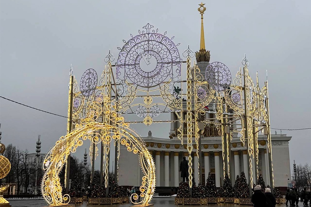 Еще более уютной и праздничной атмосферу на ВДНХ делает запуск программы "Вместе теплее". Тысячи огней, новогодние ели, сказочные фигуры преобразили территорию выставки. Уже у Главной арки посетителей встречают семь сияющих семиметровых ворот, ведущих к настоящему гиганту - главной арке высотой 18 метров.