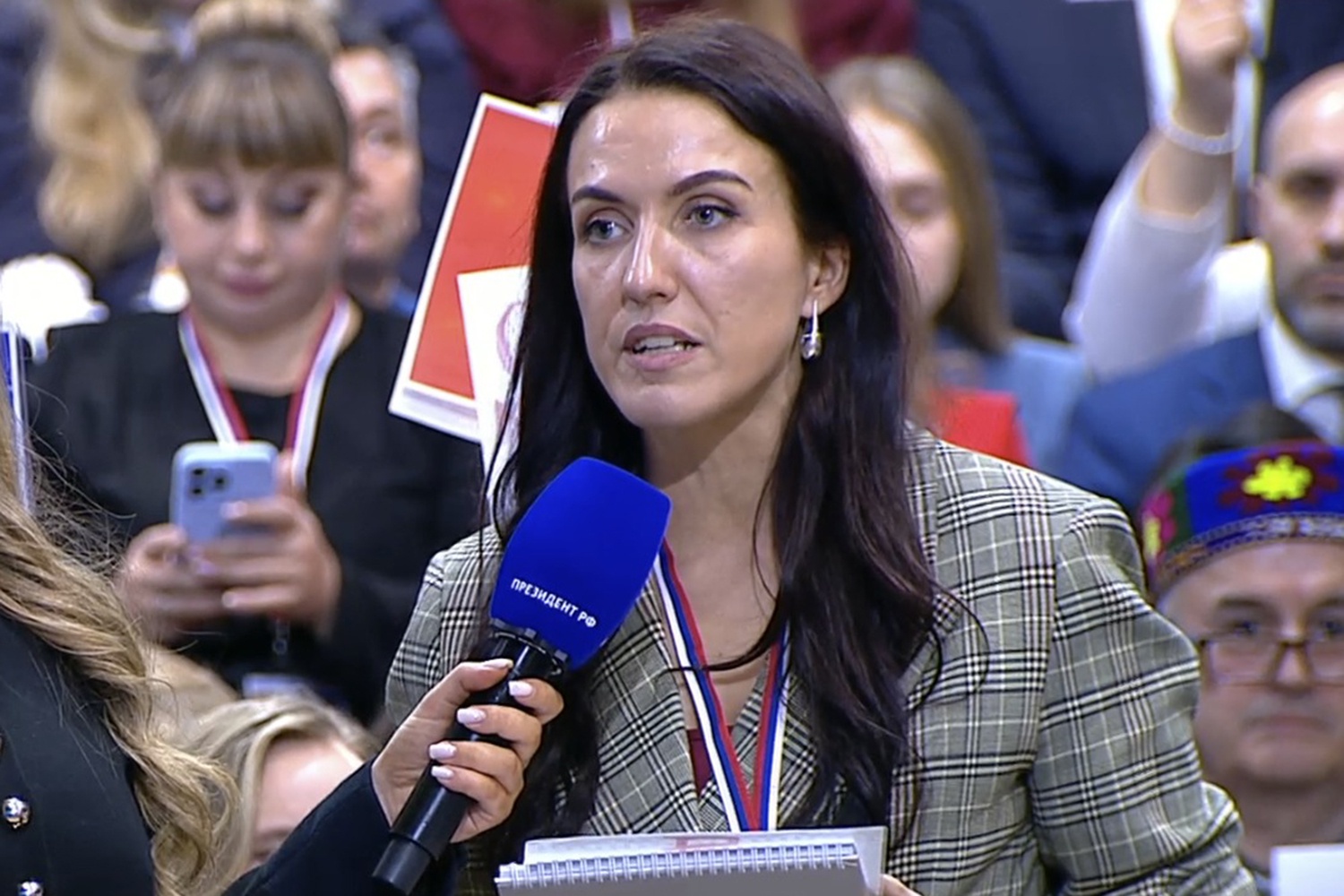 Одним из первых в эфир "Прямой линии" вышло видеообращение Кристины Гребе из Новосибирска. Она рассказала, что ее муж погиб в зоне спецоперации еще в январе 2024 года. Однако она и двое сыновей бойца до сих пор не получают пенсию по потере кормильца и другие выплаты.