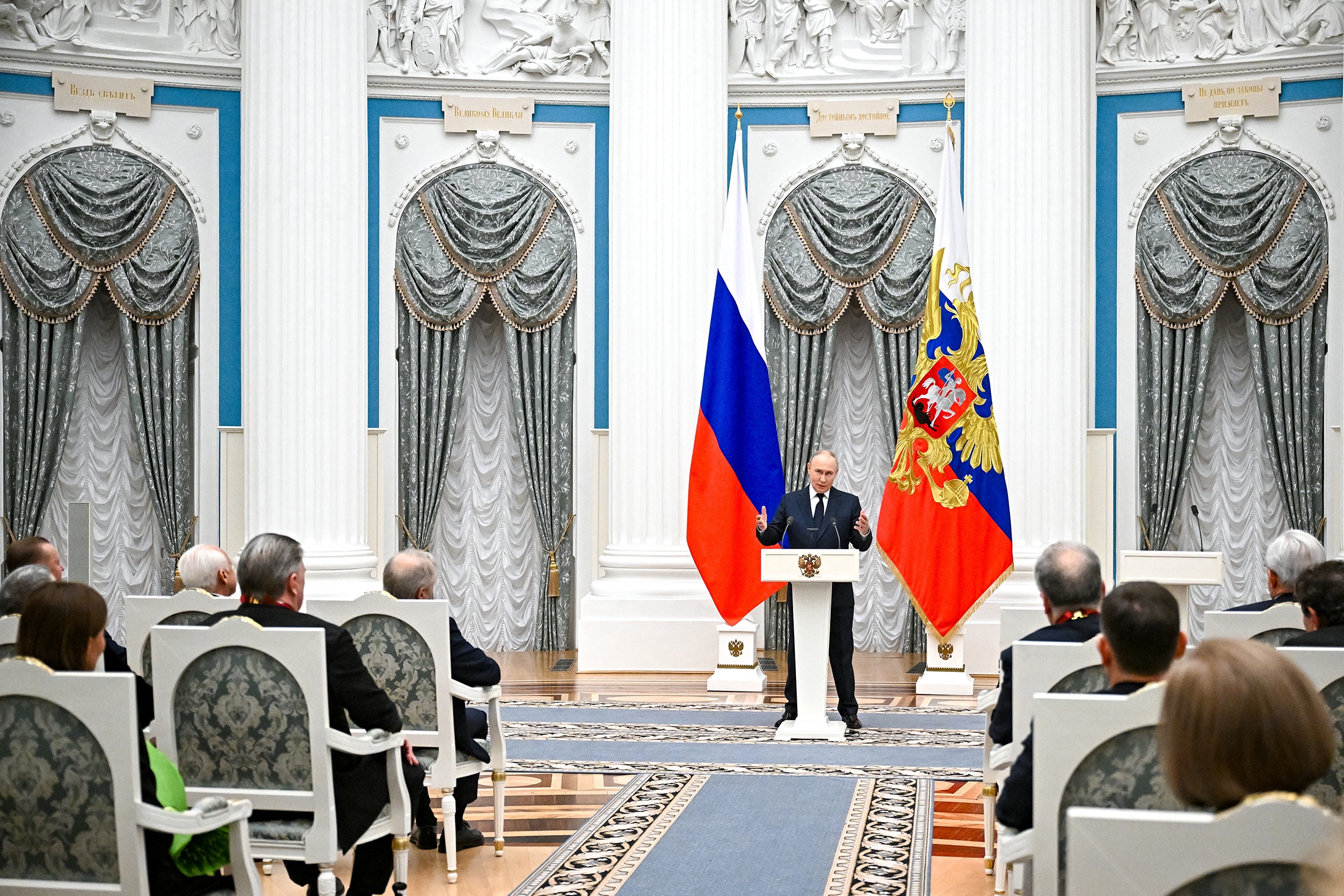 Вручая награды, Путин отметил, что режиссер Никита Михалков удостоен высшей государственной награды - ордена святого апостола Андрея Первозванного. "Опытный кинорежиссер, человек, для которого преданность Отечеству, стремление защищать нашу историю, духовные ценности, развивать отечественную культуру являются поистине определяющими жизнь", - заявил президент.