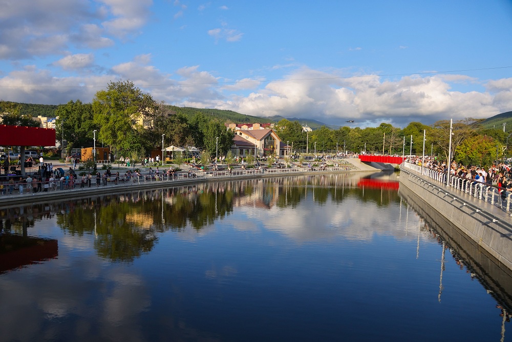 К юбилею города завершили строительство третьей очереди набережной реки Рогатки. Молодые южносахалинцы оценили первый бетонный скейт-парк на улице Горького. Название для него выбирали всем миром, остановились на динамичном - "Цунами".