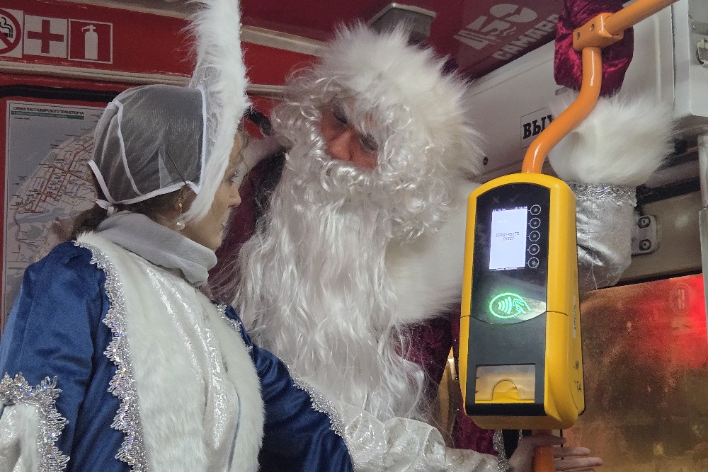 Картины же настоящего города, принарядившегося к праздникам, можно было прекрасно рассматривать в окна. Маршрут для новогоднего трамвая выбран удачно, он проходит через весь город, от Барбашиной Поляны до Хлебной площади, где почти 440 лет назад и была основана крепость Самара.