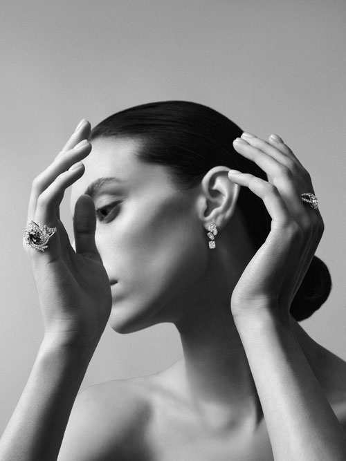 К Новому году ювелирная компания Posie обогатила свои знаковые коллекции новыми украшениями и провела съемку в новой, черно-белой, стилистике: в этих фотографиях главенствует театральная строгость, и ничто не отвлекает глаз от главных персонажей - бриллиантовых драгоценностей.