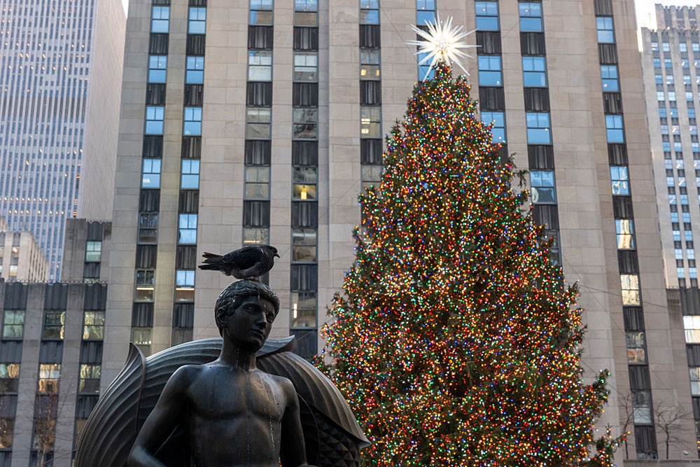Праздничная елка Рокфеллеровского центра в Нью-Йорке ежегодно доставляется из Скандинавии. Она представляет собой гигантское сооружение, которое весит от 12 до 14 тонн и высотой более чем 21,5 метра. Ее верхушка в виде звезды украшена миллионами инкрустированных кристаллов.