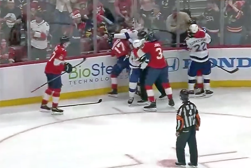 Она переросла в массовую драку, в которой приняли активное участие восемь игроков обеих команд. По итогам побоища судьи отправили в штрафные боксы девять самых активных участников, из-за чего некоторым игрокам пришлось отбывать штраф стоя, так как места на скамейке штрафников всем не хватило.