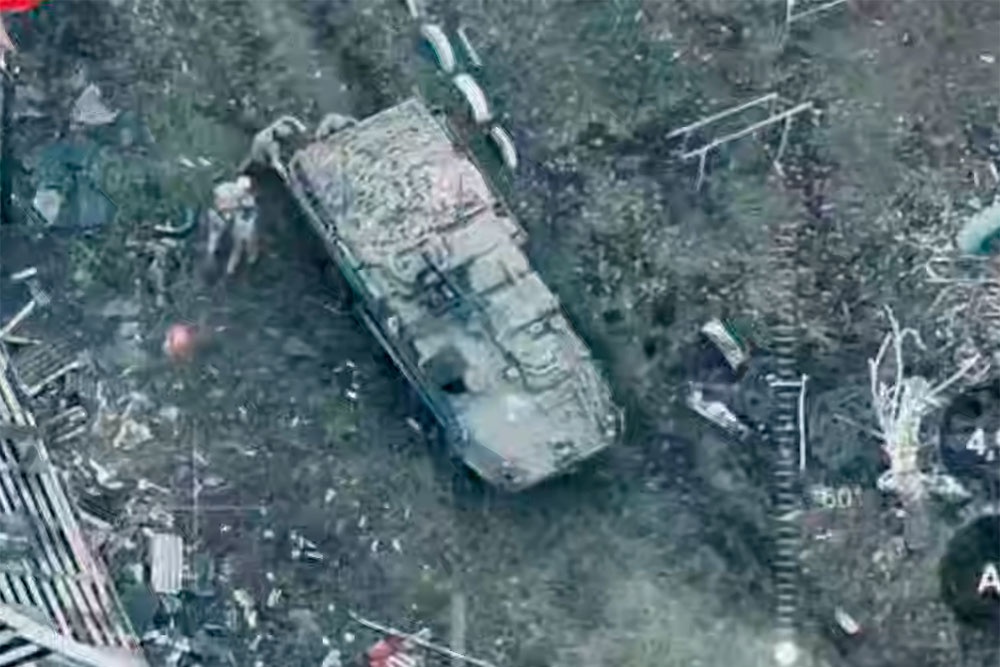 Какое-то расстояние БТР проехал по инерции, но в него попало еще несколько беспилотников. В конце концов он полностью лишился хода, и вэсэушники бросили его с открытым кормовым люком, чем и воспользовались наши дроноводы: после прилета "птичек" американский "подарок" загорелся.