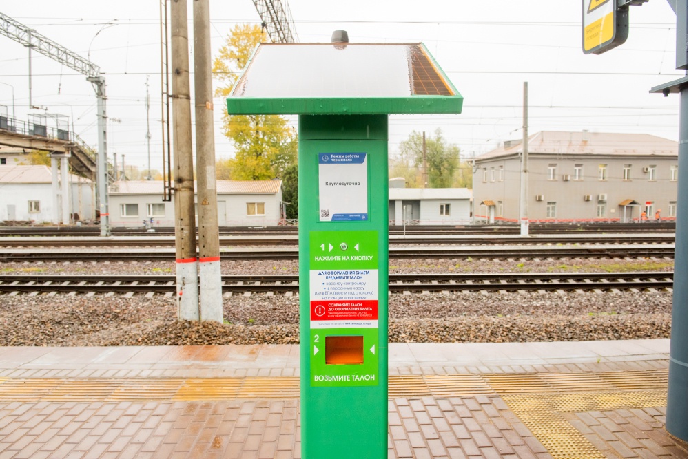 На таких платформах устанавливают ярко-желтые и зеленые "столбики", печатающие талоны с указанием пункта отправления. Пассажиры предъявляют их кассиру-контролеру в пути или на станции прибытия, чтобы подтвердить точку отправления и оформить билет без дополнительного сбора. Кстати, в 2025 году ЦППК завершила оснащение станций в Московской области терминалами предварительных проездных документов.