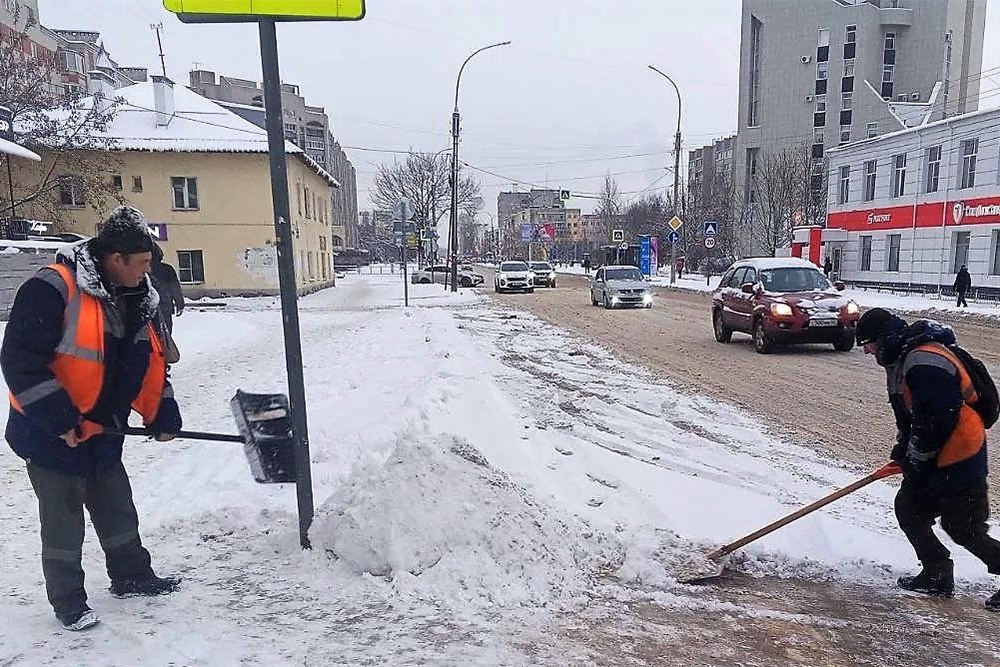 В условиях продолжающегося снегопада сотрудники муниципальных организаций в постоянном режиме чистят от снега дороги, проезды, тротуары, остановочные комплексы и пешеходные переходы в Великом Новгороде. Этим занимаются 109 единиц техники и 114 специалистов ручной уборки.
