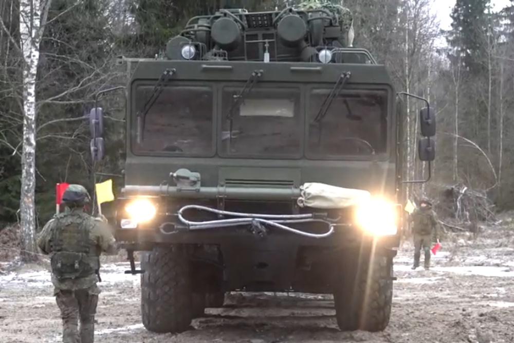 На кадрах, опубликованных военным ведомством, видно, как комплекс "Орешник" перемещается по лесной дороге в район боевого патрулирования. Затем его накрывают маскировочными сетками.