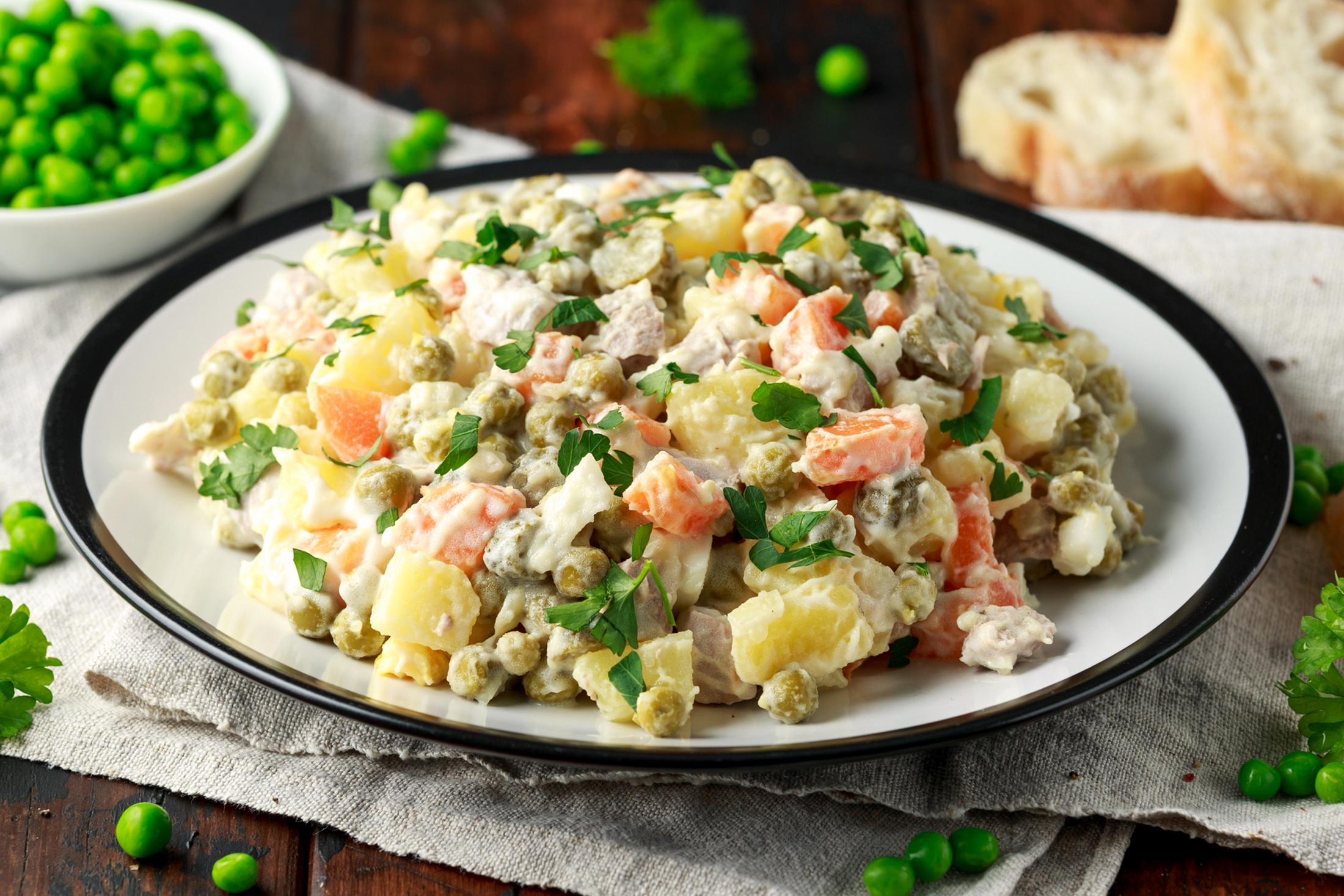 Специалист напомнила, что безопасной порцией традиционного салата "Оливье" считается 100 граммов, это примерно две-три столовые ложки. Однако порцию можно удвоить без вреда для здоровья и фигуры, если сделать салат более полезным. Для этого надо заменить майонез на греческий йогурт с горчицей, использовать запеченную индейку или курицу вместо колбасы, а также добавить в блюдо больше свежей зелени и овощей.