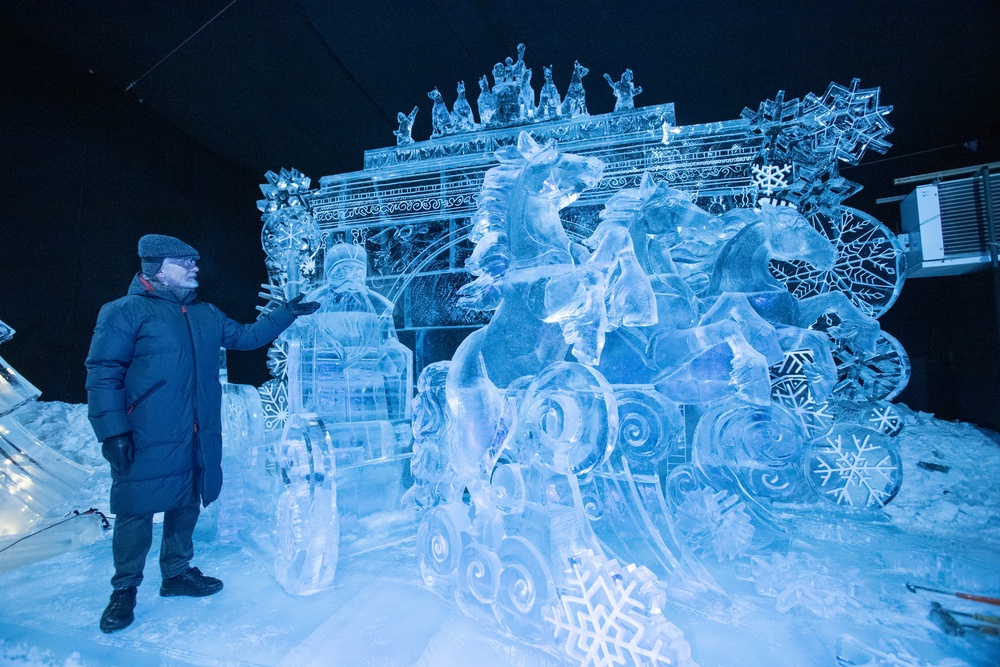 Специально для фестиваля у Нарышкина бастиона возвели большой павильон. С помощью пяти холодильных агрегатов здесь постоянно поддерживается мороз - минус три - восемь градусов: такая температура позволяет льду не таять, а людям - не мерзнуть.