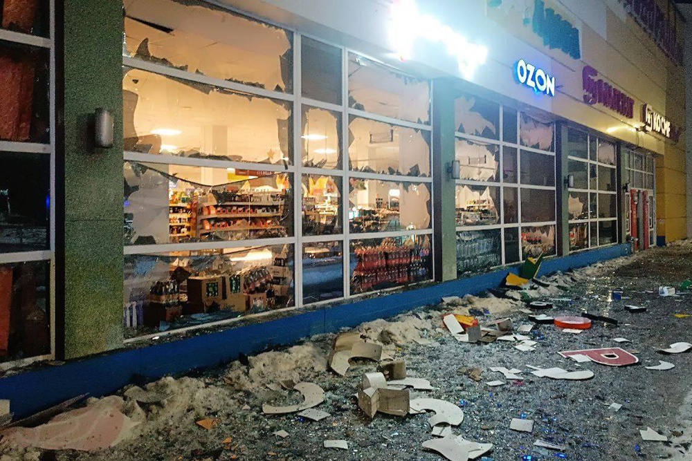 В результате атаки загорелось торговое помещение - пожар потушен. Также повреждены фасад и остекление коммерческого объекта, выбиты окна восьми квартир в трех многоквартирных домах. Осколками посекло автомобиль. Кроме того, повреждены фасад, остекление коммерческого объекта.