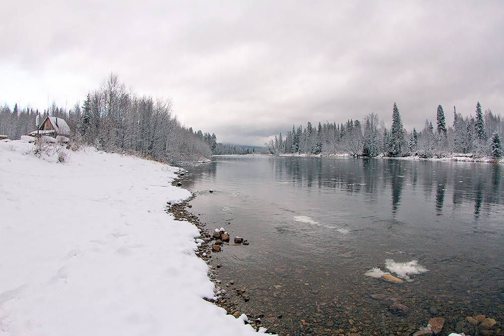 Вроде погода с легким минусом, хмуренько, мокрый снежок и дождичек, как вдруг ночью - минус двенадцать, а в горах еще на шесть градусов меньше. И пойдет шуга и молодой ледок, быстро забивая все узости и изгибы. Попробуй поплыви тогда, паренек, попробивай лодкой шугу, пока не закрепла…