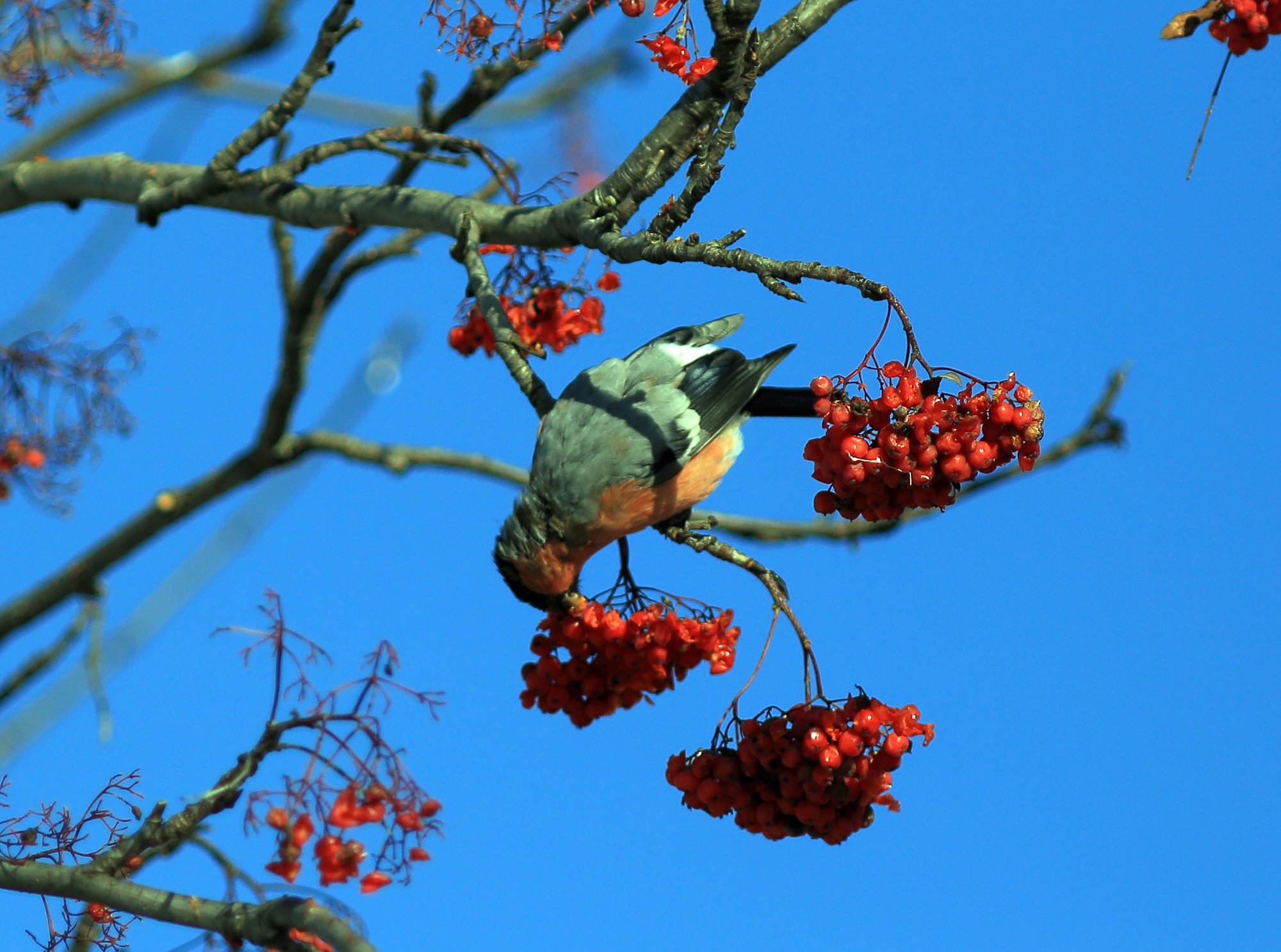 Надо поблагодарить русских людей за любовь к тоненькому щедрому дереву, которое они традиционно высаживают у дома, проявляя восхитительное равнодушие к бесценным ягодам. Сколько пернатых пользуется этой яркой скатертью-самобранкой!