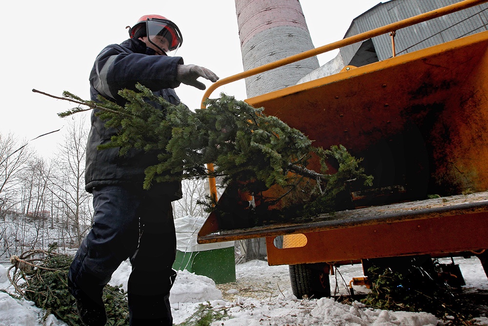 Что касается мусорных контейнеров, то, перед тем как выкинуть елку, надо распилить ее и срезать ветки.