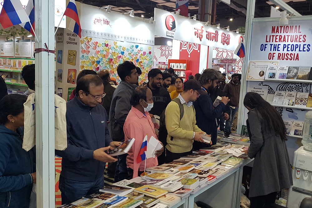 Индийцы массово подходят к стенду РФ, активно общаются с российскими авторами, интересуются переводами как отечественной классики, так и произведений современной российской литературы на хинди.