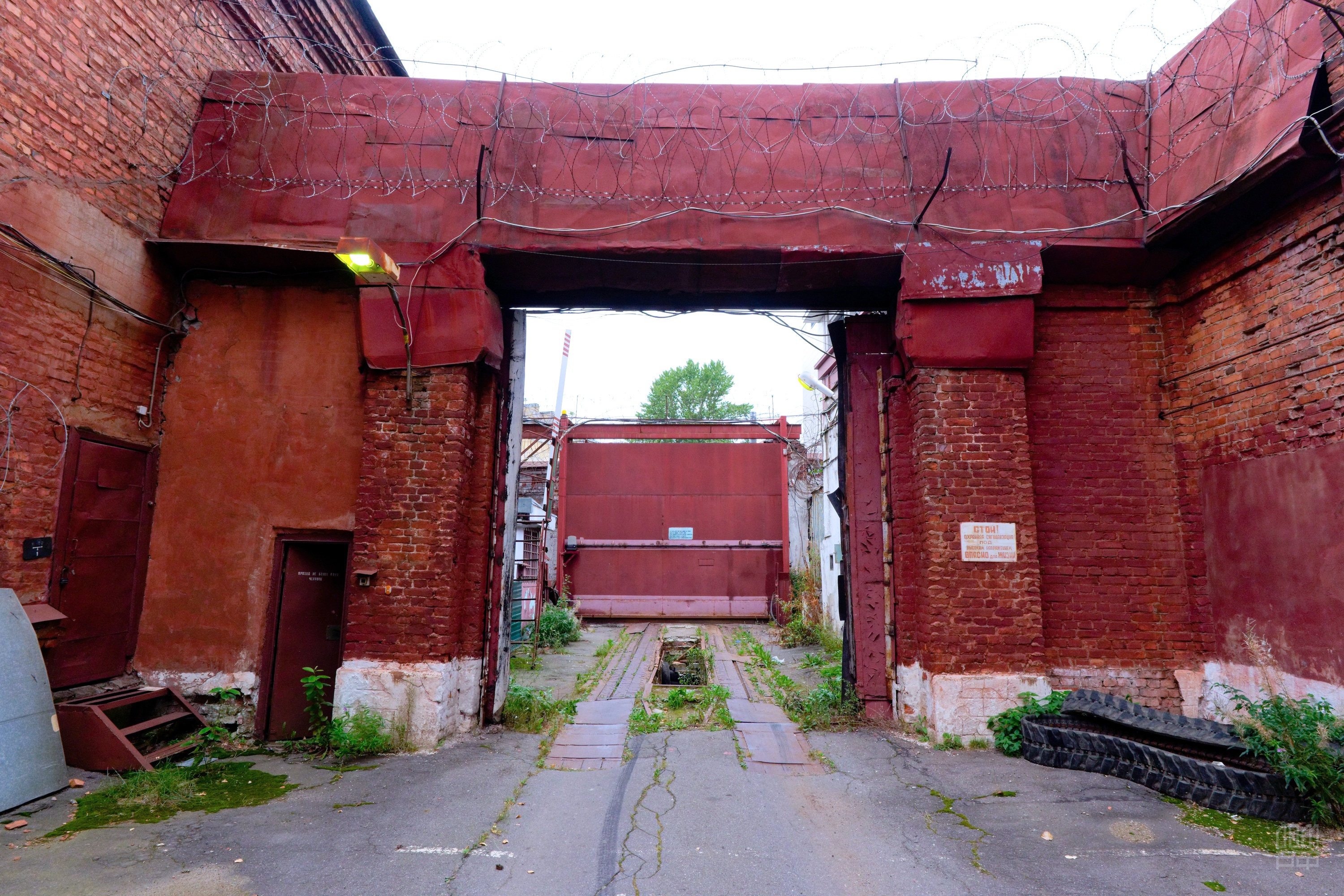 Перед тем, как выставить "Кресты" на продажу, журналистам показали, как это место выглядит сейчас. Мы заходим со стороны улицы Комсомола, где высокая глухая стена высотой более трех метров кажется почти монолитной. Лишь в одном месте ее разрезают толстые металлические ворота. За ними - специальная яма для досмотра автомобилей-автозаков снизу. В ней уже выросли молодые деревца, так же как и в боковом помещении для содержания собак - исторический тюремный комплекс фактически пустует с 2017 года.