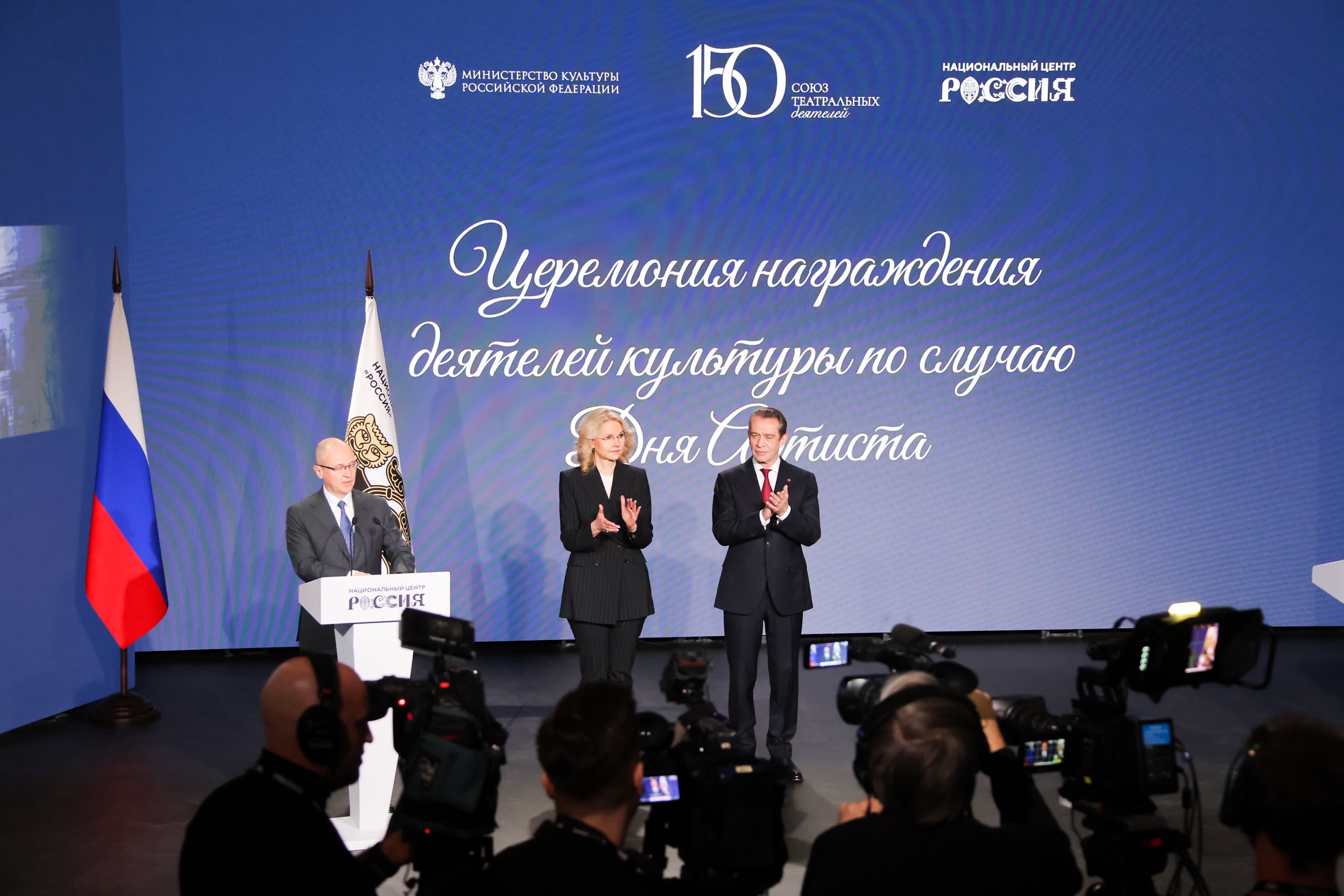 В Национальном центре "Россия" в Москве прошла первая церемония вручения государственных наград деятелям культуры и объявления о присуждении званий народных и заслуженных артистов. Звания и награды получали популярные актеры, известные музыканты, педагоги и организаторы театрального дела. В церемонии участвовали зампредседателя правительства РФ Татьяна Голикова, первый заместитель руководителя администрации президента Сергей Кириенко, председатель Союза театральных деятелей Владимир Машков.