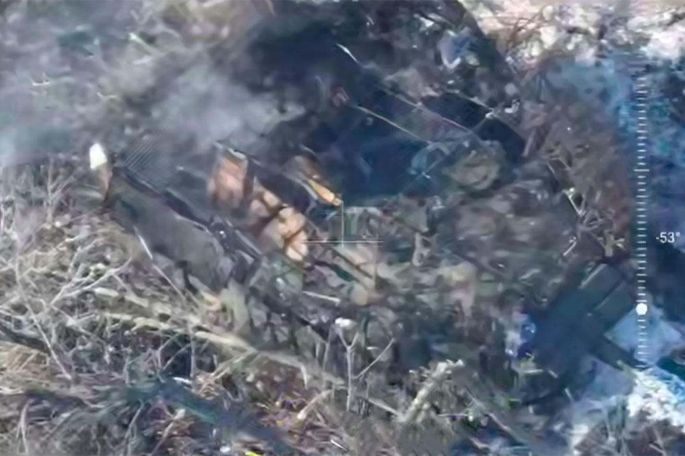 Первый удар пришелся в основание башни со стороны кормы. Вскоре в это же место прилетел второй БПЛА. В результате когда еще один дрон был отправлен для контрольного осмотра танка, тот уже горел.