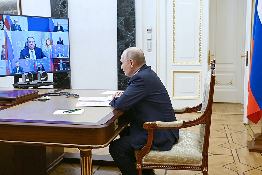 Второй темой для обсуждения на совещании стал вопрос "о нашем участии в строительстве многополярного мира и наших действиях в этой связи", отметил Путин. Глава государства предложил начать именно с этого.