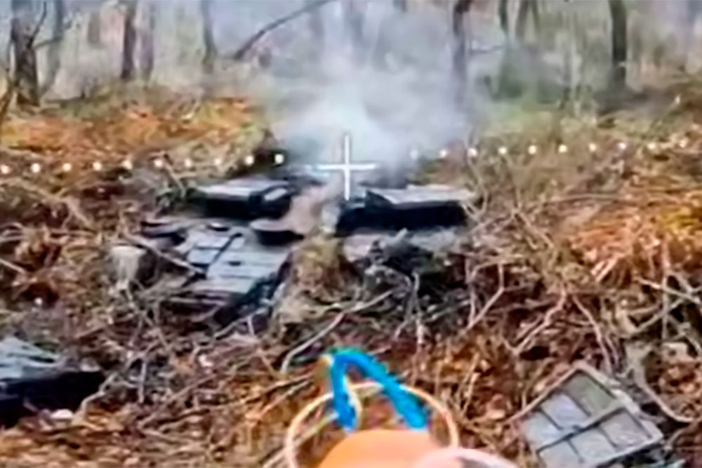 В Telegram-канале военно-аналитического портала Lostarmour показано, как управляемые через оптоволокно беспилотники-камикадзе "Князь Вандал Новгородский" вначале подожгли один танк, а затем ударом в люк механика-водителя уничтожили другой.